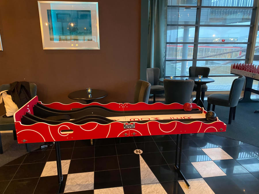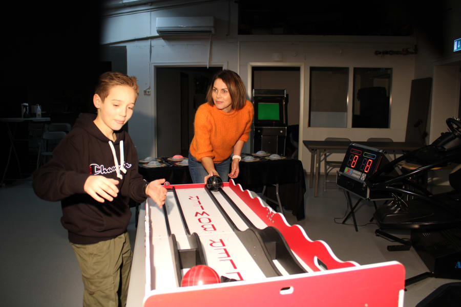Her gjelder det å rulle kulen akkurat passe hardt slik at den stopper og legger seg på riktig sted. Et ferdighetsspill for inntil 2 spillere samtidig og som passer for alle.