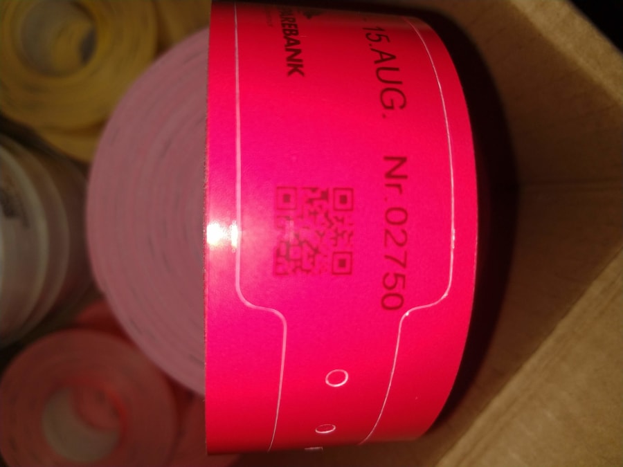 Vi produserer billettbånd i forskjellige farger. med lim eller lås for mer krevende bruk. Billettbånd kan lages med logo, nummerering, QR ode, strekkode, dato.