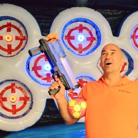 Hold deg klar til å skyte som en proff med vår oppblåsbare skytevegg! Med 8 blinkende mål som skifter farge, vil du aldri kjede deg igjen. Enten du bruker en nerf-pistol, håndball, tennisball eller til og med en myk-pil og bue, vil vår resultattavle holde oversikt over treffene dine og gi deg den ultimate konkurranseopplevelsen. Vår oppblåsbare skytevegg gir deg en god dose adrenalin og masse moro for både voksne og barn. Lei vår skytevegg i dag og få en opplevelse du aldri vil glemme!