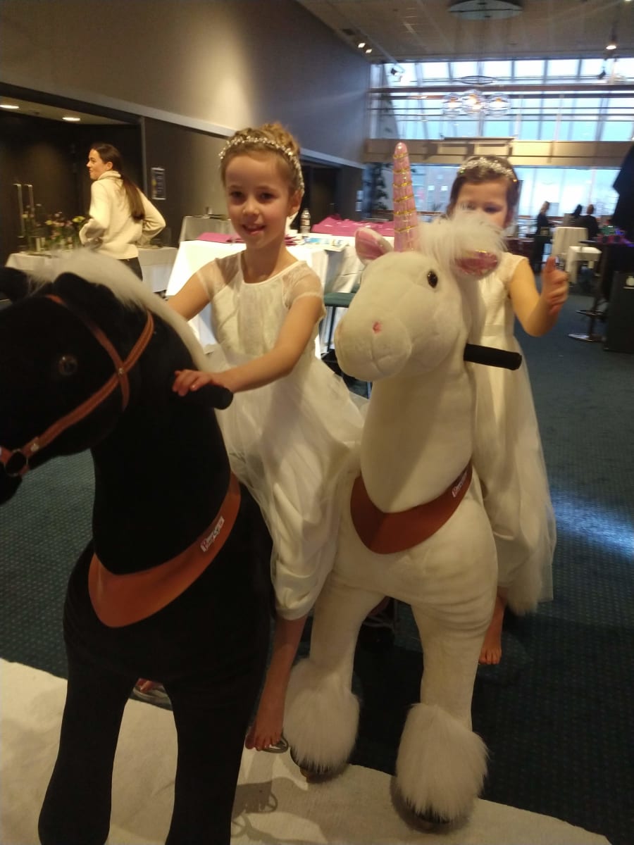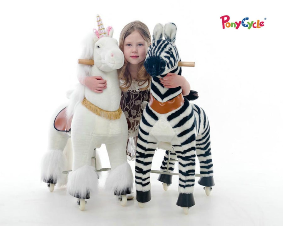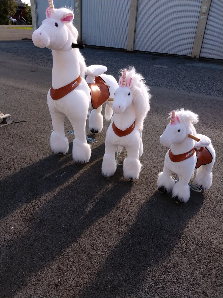 Dette er artig for både store og små. Syklene går framover ved at rytterne beveger setet opp og ned. De svinger ved å snu på ponniens hode. Tre størrelser, for barn og voksne inntil 120 kg.