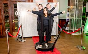 Vår 360 Fotobooth er en unik opplevelse som lar gjestene dine video i en 360 graders opplevelse. Med vår avanserte teknologi kan gjestene dine filmes mens kamerate roterer rundt dem, og deretter se resultatene i en imponerende panoramisk visning.