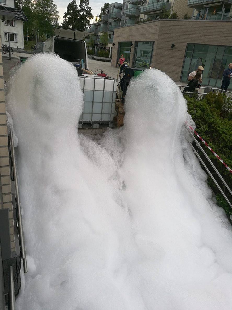 Vi har i flere år vært landets største leverandør av skumparty. Skumkanoner som leverer fra 3 til 120 m3 skum i minuttet. Vi har også skumfosser som leverer 30 til 250 m3 skum pr. minutt, enorme mengder med luftig skum. Vi har også vanntette skumbinger i forskjellige størrelser.